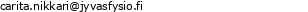 Tmi Carita Nikkari:n toimiala on ja toimipisteemme sijaitsee osoitteessa Kirrintie 11 , 40270 PALOKKA. Tavoitatte meidät parhaiten puhelimitse numerosta +358405093077 tai sähköpostitse osoitteesta carita.nikkari@jyvasfysio.fi. Lisätietoja toiminnastamme ja tarjoamistamme palveluista löydätte myös verkkosivultamme osoitteesta www.jyvasfysio.fi Yrityksemme Y-tunnus on1154309-4. Katso tarkempi sijaintimme oheiselta kartalta, tai tee reittihaku suoraan käyntiosoitteeseemme: Tmi Carita Nikkari,Kirrintie 11 , 40270 PALOKKA
