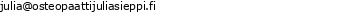 Julia Sieppi:n toimiala on ja toimipisteemme sijaitsee osoitteessa Eurantie 8 , 00550 HELSINKI. Tavoitatte meidät parhaiten puhelimitse numerosta 0453560125 tai sähköpostitse osoitteesta julia@osteopaattijuliasieppi.fi. Lisätietoja toiminnastamme ja tarjoamistamme palveluista löydätte myös verkkosivultamme osoitteesta www.osteopaattijuliasieppi.fi Yrityksemme Y-tunnus on3214779-5. Katso tarkempi sijaintimme oheiselta kartalta, tai tee reittihaku suoraan käyntiosoitteeseemme: Julia Sieppi,Eurantie 8 , 00550 HELSINKI