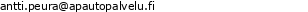 AP Autopalvelu Oy:n toimiala on ja toimipisteemme sijaitsee osoitteessa Onnelantie 143 , 41360 VALKOLA. Tavoitatte meidät parhaiten puhelimitse numerosta 0400829012 tai sähköpostitse osoitteesta antti.peura@apautopalvelu.fi. Lisätietoja toiminnastamme ja tarjoamistamme palveluista löydätte myös verkkosivultamme osoitteesta www.apautopalvelu.fi Yrityksemme Y-tunnus on2518369-1. Katso tarkempi sijaintimme oheiselta kartalta, tai tee reittihaku suoraan käyntiosoitteeseemme: AP Autopalvelu Oy,Onnelantie 143 , 41360 VALKOLA